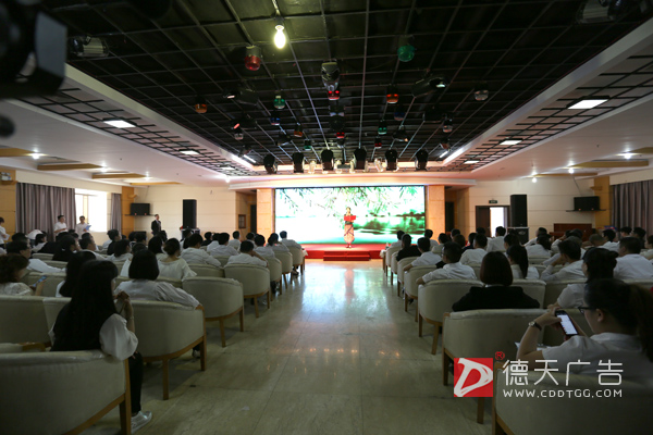 員工在舞臺上深情朗誦